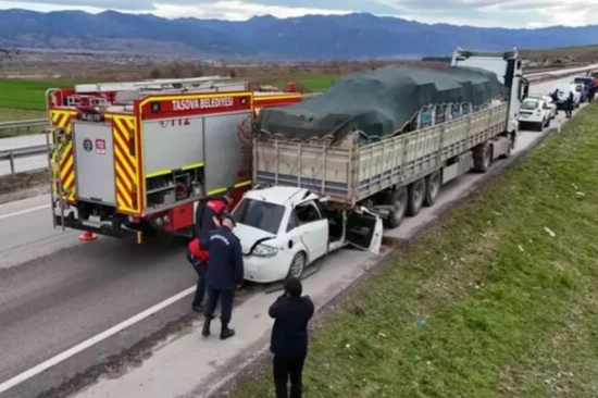 Kaza, Taşova D-100 kara yolu Şahinler Köyü mevkisinde meydana geldi. Zafer Bozkurt yönetimindeki 34 FN 7454 plakalı otomobil, akaryakıt istasyonundan çıkan İsa Tokluca yönetimindeki 32 AEA 465 plakalı TIR'a arkadan çarptı. İhbarla kaza yerine sağlık, jandarma ve itfaiye ekipleri sevk edildi. Ekipler, otomobil sürücüsü Zafer Bozkurt ile yanında bulunan Ümit Çatanak'ın hayatını kaybettiğini belirledi. Sıkıştıkları yerden çıkartılan 2 kişinin cansız bedeni, hastane morguna kaldırıldı. Bozkurt ve Çatanak'ın, İstanbul'dan memleketleri Ordu'da yaşamını yitiren bir yakınlarının cenazesine gitmek için yola çıktıkları öğrenildi. Kazayla ilgili soruşturma başlatıldı.