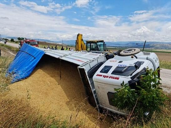 Kaza, Amasya-Doğantepe yol ayrımında meydana geldi. Abdullah Şahiner (48) yönetimindeki 05 ABD 220 plakalı TIR, sürücüsünün direksiyon hakimiyetini kaybetmesi sonucu yoldan çıkarak devrildi. Kazayı görenlerin haber vermesi üzerine bölgeye polis, itfaiye ve sağlık ekipleri sevk edildi. Sağlık ekiplerince yapılan ilk müdahalenin ardından sürücü Şahiner, Amasya Üniversitesi Sabuncuoğlu Şerefeddin Eğitim ve Araştırma Hastanesi'ne kaldırılarak tedaviye alındı. TIR'da yüklü olan tonlarca buğday yol kenarına döküldü. Buğdayın toplanması için çalışma başlatıldı. TIR sürücüsünün sağlık durumunun iyi olduğu ve hayati tehlikesinin bulunmadığı öğrenildi.