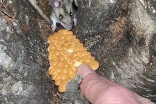 Amasya’nın Taşova ilçesi Dereli köyü ormanında nesli tükenme tehlikesi altında olan Anadolu dikenli faresi (Acomys cilicicus) görüntülendi. Doğa yürüyüşü yapan Bedrettin Oral, fareye bisküvi yedirdi.