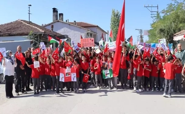 Merkeze bağlı Kayabaşı Köyü Şehit Veysel Aslan İlk-Ortaokulu öğrencileri, okul bahçesinden başlayarak köy meydanına kadar yürüdü. Yaklaşık 150 öğrenci, öğretmenleri eşliğinde düzenlenen yürüyüşte Filistin’de yaşanan insani drama dikkat çekti. Etkinlik kapsamında öğrenciler ellerinde dövizler taşıyarak barış çağrısında bulundu. Okul Müdürü Melik Dişli, yürüyüşün “Filistin Farkındalık Etkinlikleri” kapsamında düzenlendiğini belirterek, “Bugün okulumuzda 150 öğrencimizle birlikte Filistin’e destek yürüyüşü yaptık. Çocuklarımız üzerinde bir farkındalık oluşsun, bu zulüm sona ersin istedik. Filistin’in her zaman yanında ve destekçisiyiz. Onların acısı bizim de acımız. Çocuklarımız bu bilinçle yetişiyorlar. Katil İsrail’i kınıyoruz” dedi.