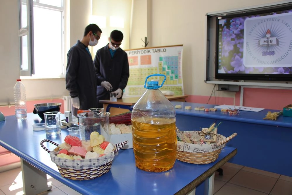 Amasya Şehit Gültekin Tırpan Mesleki ve Teknik Anadolu Lisesindeki çalışmaya öğrenciler Rahman Emin Kapusuz, Nuri Can Yaprak ve Biyoloji öğretmeni İmra Soylu'nun öncülük ettiği ekip imza attı. Her gün yemek pişirilen pansiyonda atık yağlar biriktirildi. Bu yağlar kostik ve suyla karıştırılıp bir dizi işlemin ardından sabuna dönüştürüldü. Çeşitli şekiller verilen sabunların renklendirilmesi için de gıda boyaları, portakal kabuğu ve pancar kullanıldı. İlk etapta okuldaki tuvalet ve atölyelerin sabun ihtiyacı sağlandı.