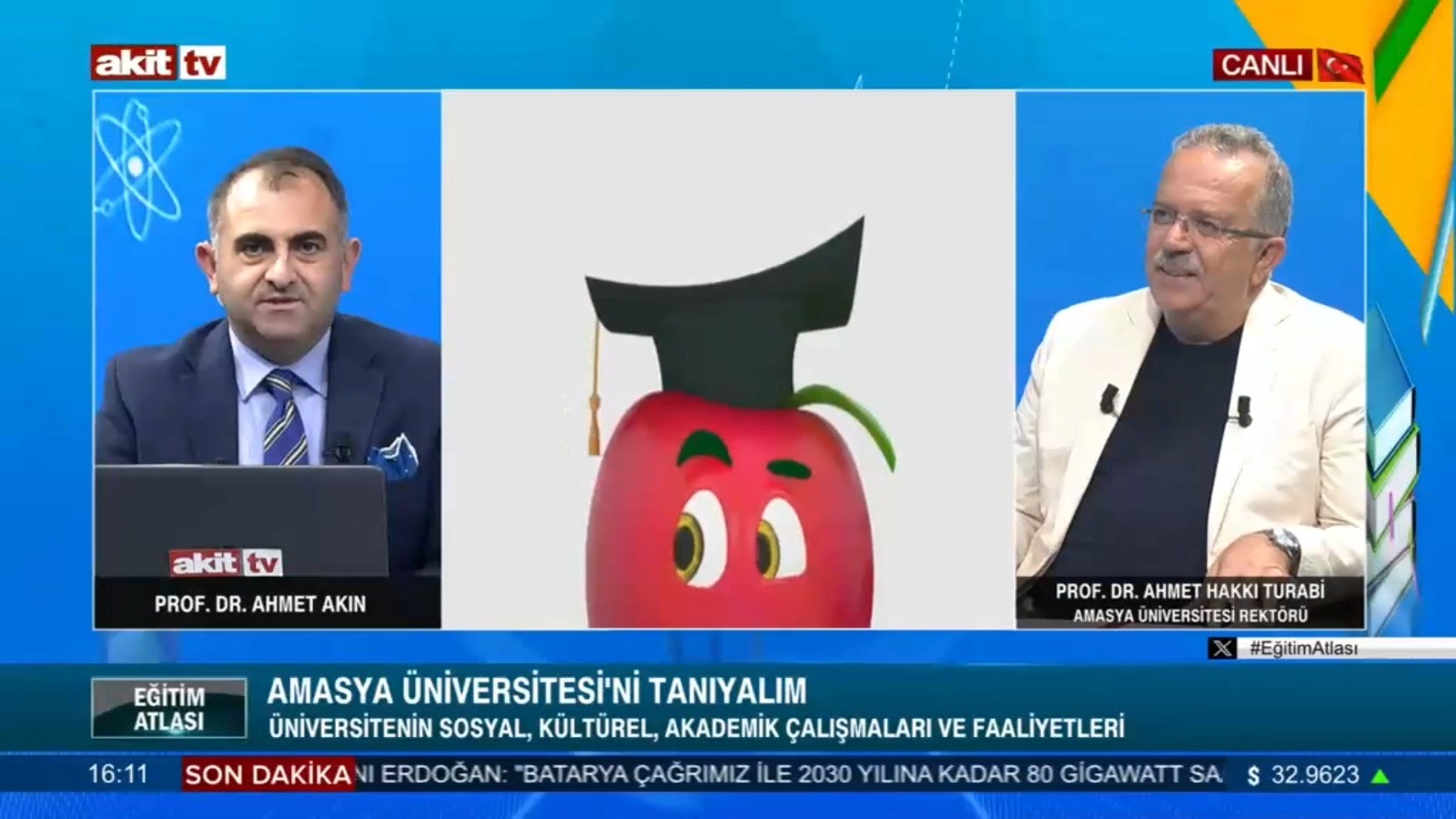 Program sunucusu Prof. Dr. Ahmet Akın’ın sorularını yanıtlayan Amasya Üniversitesi Rektörü Prof. Dr. Ahmet Hakkı Turabi, “Amasya Üniversitesi olarak, alanlarında deneyimli ve başarılı akademik kadrolara sahibiz. 800’e yakın akademik personelimiz ve 625 idari personelimiz ile öğrencilerimizin en nitelikli biçimde yetişmesi için büyük bir özveriyle çalışıyoruz. Öğrencilerimize sunduğumuz eğitimin kalitesinden, üniversitemizdeki araştırma olanaklarından, sunduğumuz sosyal imkanlardan, kütüphanelerimizden ve üniversitenin akademik kadrosundan eminiz. Öğrencilerimizin %30’una yemek bursu, %10’una kısmi zamanlı öğrenci bursu veriyoruz. Amasya Üniversitesi Ailesi mottosuyla yola çıkarak üniversitede bu aile sıcaklığını yaşatmaya çalışıyoruz. Bu açıdan her ayın ilk menüsünü öğrencilerimizin anket sonucuna göre belirliyoruz. Yükseköğretim Kurumundan tarafından verilen bayrak ödüllerinden 16 tane almayı başardık. Yerleşkelerimizde %90 oranında engelsiz erişim sağlamış olduk. Amasya’nın her yeri neredeyse yürüme mesafesindedir. Amasya’da KYK ve özel öğrenci yurtları yeterli düzeydedir. Tercih aşamasındaki adaylara gönüllerindeki üniversite ve meslekle buluşmaları temennisinde bulunuyorum. Amasya bir huzur ve güven şehridir. Gençlerimiz, Amasya Üniversitesi’ni gönül rahatlığı ile tercih edebilirler” dedi.