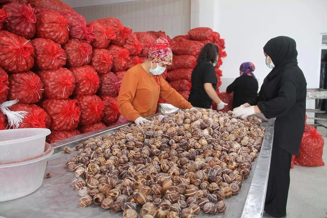 Fabrikanın İşletme Müdürü Süleyman Güdük, fabrikalarının bir yıl kadar önce Tarım ve Kırsal Kalkınmayı Destekleme Kurumunun (TKDK) desteğiyle 7 bin 500 metrekare kapalı alan üzerine kurulduğunu söyledi. Türkiye'nin çeşitli yerlerinde doğadan canlı olarak toplanan salyangozun fabrikalarında işlemden geçtiğini anlatan Güdük, “Canlı olarak aldığımız salyangozları önce temizliyoruz. Temiz kasalara aldığımız salyangozları soğuk hava depolarında tutarak donduruyoruz. Ardından şoklama yapıyor ve imalata alıyoruz. Büyüklüğüne göre tasnif ettikten sonra paketlemeye getiriyoruz. Kadın işçiler tarafından eti ve kabuğu ayrı işlenen salyangozlar, son kontrolleri yapıldıktan sonra soğuk zincir tırlarıyla ihraç ediliyor” dedi.