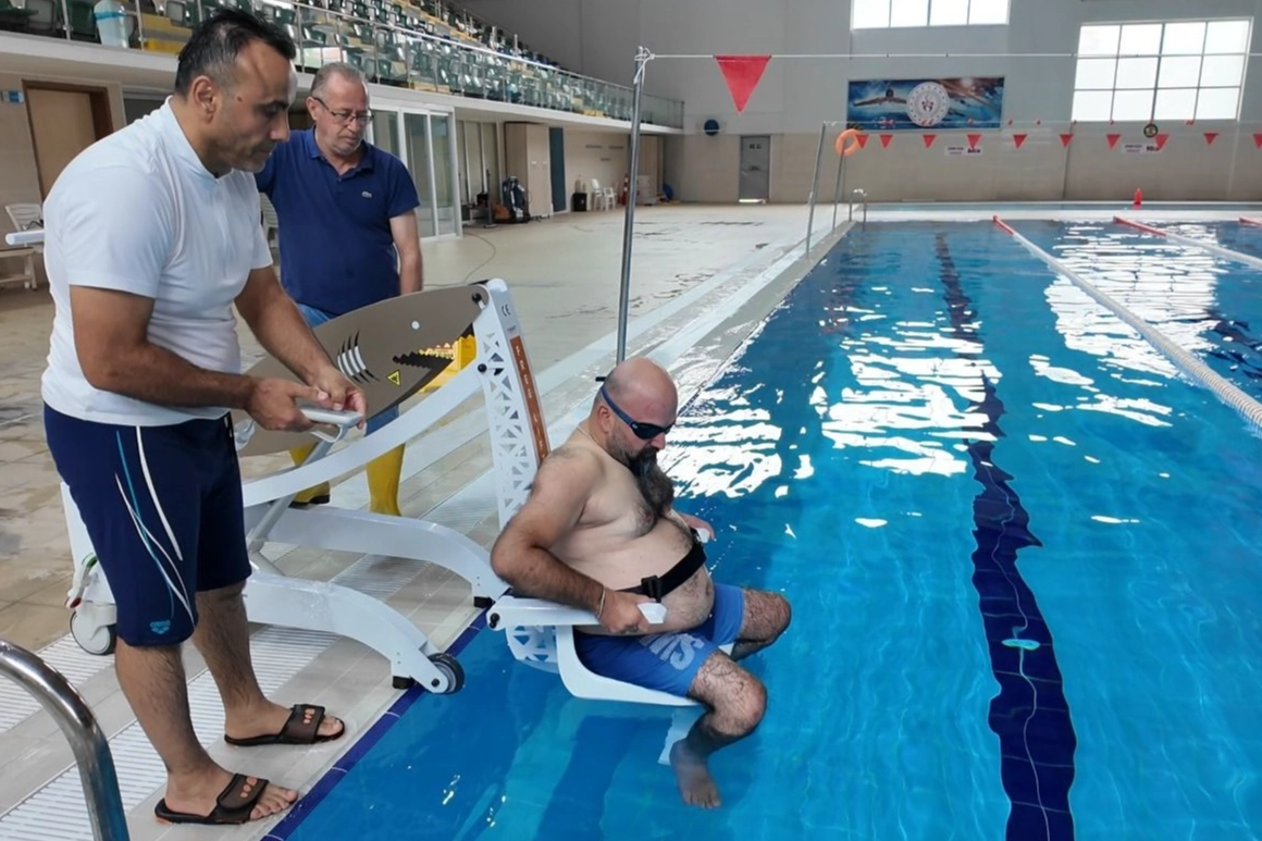 Özel gereksinimli vatandaşlar havuza güvenli şekilde indirilebiliyor,