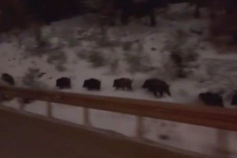 Görüntülerde, karlı arazide ilerleyen domuz sürüsünün bir süre yol kenarında hareket ettiği, ardından yeniden ormanlık alana girerek gözden kaybolduğu görüldü. Domuzların yerleşim yerine yaklaşması, çevrede bulunan vatandaşların dikkatini çekti.