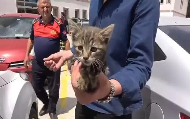 Olay, Amasya Ağız ve Diş Sağlığı Merkezi otoparkında meydana geldi. Çevredekiler, park halindeki otomobilden kedi sesi geldiğini fark edince durumu, 112 Acil Çağrı Merkezi'ne bildirdi. İhbarla bölgeye itfaiye ekibi sevk edildi. Ekiplerin yaptığı kontrolde, otomobilin motor kısmına kedinin girdiği ve burada sıkıştığı belirlendi. Yavru kedi, kurtarma girişimi sırasında önce başka bir araca ardından bir diğerine geçti. Yavru kedi, ekiplerin 1 saatlik çalışması sonucu yakalandı.