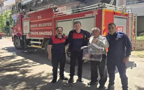 Şeyhcui Mahallesi Osmanlı Evleri mevkisinde kafesinden kaçan muhabbet kuşu, yakındaki bir ağacın tepesine kondu. Kuşunu yakalamak için ağaca çıkan sahibi, mahsur kaldı. Çevredekilerin ihbarıyla adrese Amasya Belediyesi İtfaiye Müdürlüğü ekipleri sevk edildi. Ekipler, muhabbet kuşu ile sahibini mahsur kaldığı yerden kurtardı.