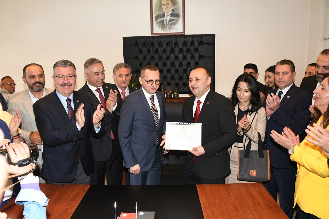 Belediye Eski Başkanı Çelik de yeni Başkan Sevindi’ye görevinde başarılar diledi. Daha sonra Belediye de devir terslim töreni gerçekleştirildi.
