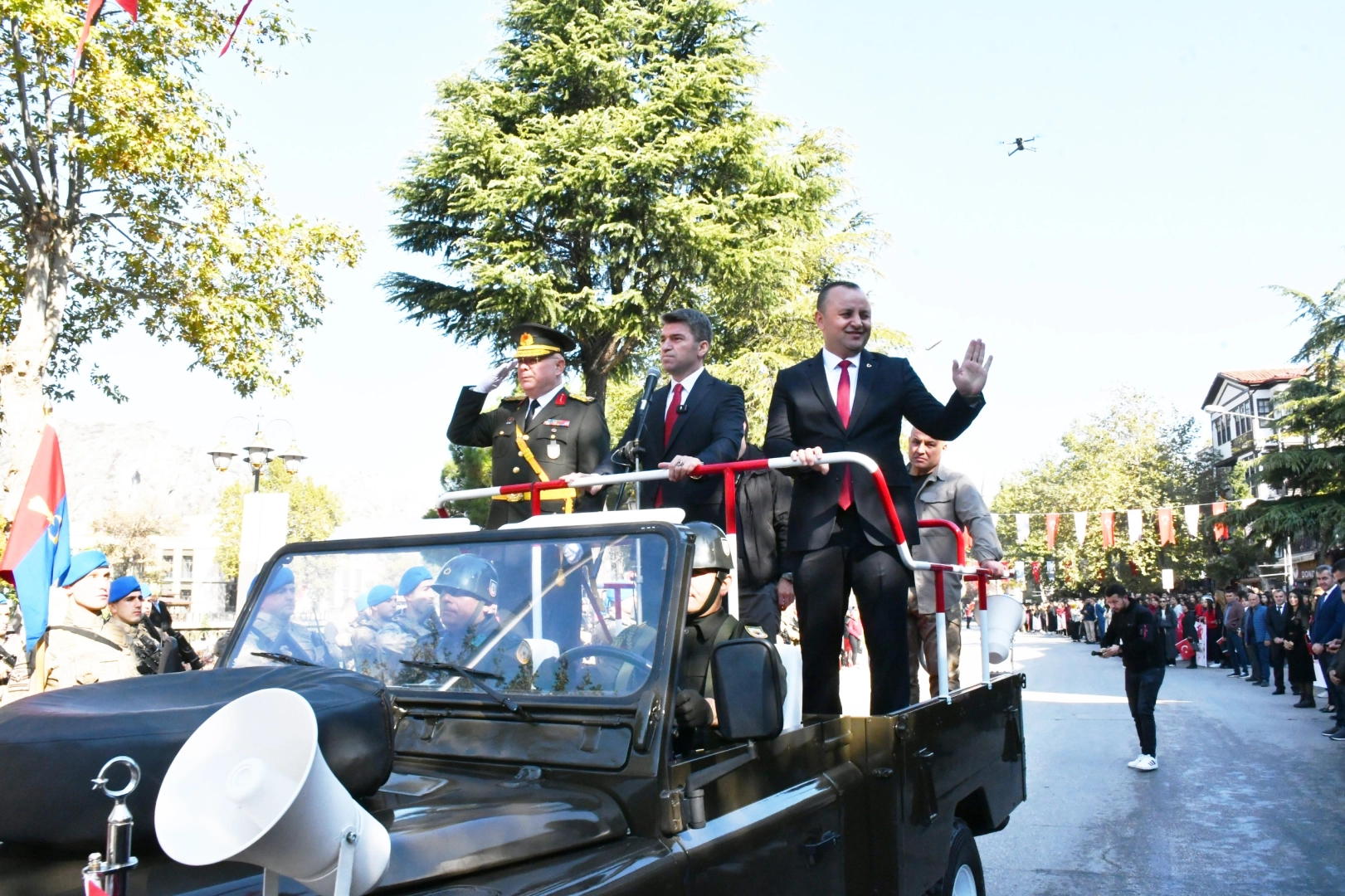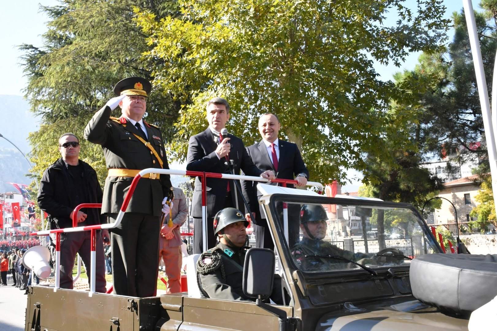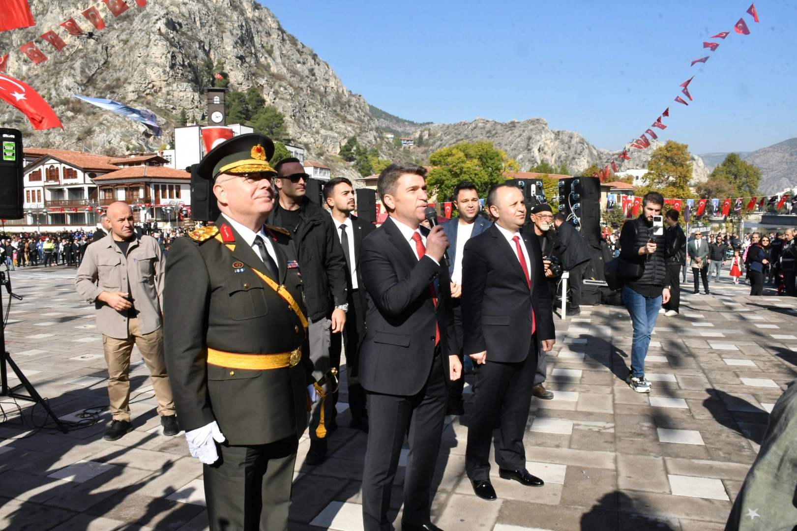 Amasya’da 29 Ekim Cumhuriyet Bayramı’nın 101. yılı coşkuyla kutlandı. Kutlamalar halkın yoğun katılımına sahne oldu. Yavuz Selim Meydanı’nda düzenlenen törende Amasya Valisi Önder Bakan, Garnizon Komutanı Tuğgeneral Kemal Çakıroğlu ve Belediye Başkanı Av. Turgay Sevindi halkın bayramını kutladı. Ellerinde Türk bayrakları sallayan çocuklar kutlamalara renk kattı. Saygı duruşu yapılması ve İstiklal Marşı’nın okunmasıyla başlayan törende Cumhurbaşkanı Recep Tayyip Erdoğan’ın kutlama mesajı okundu. Törende konuşma yapan Vali Önder Bakan, “Cumhuriyetimizin kuruluş ve ilanı olan 29 Ekim 1923, şüphesiz binlerce yıllık şanlı tarihimizin en önemli günlerinden biridir. Geçtiğimiz yıl 100. yılını büyük bir gururla kutlamış, "Türkiye Yüzyılı’na" adım atmıştık. Bugün ise 101. yılını aynı heyecan içerisinde kutluyoruz” dedi. Halk oyunu gösterisi yapılan tören askeri birlikler ile kamu kurumlarına ait araçların geçişinin ardından sona erdi. Haber: Sinan HARMANCI
