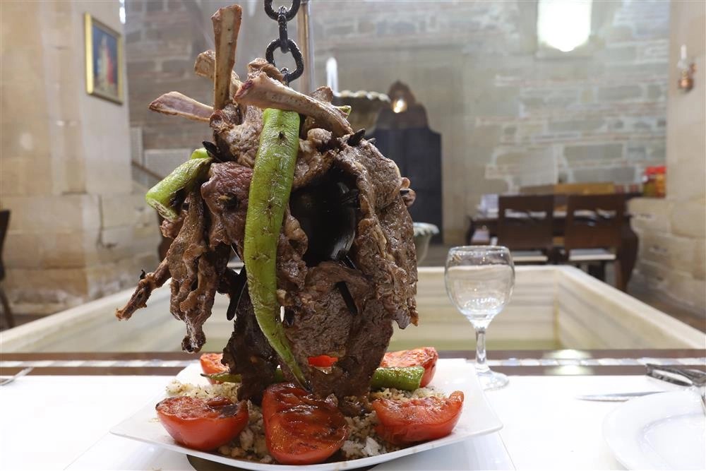 500 derece sıcaklığa ulaşan topuzuyla dakikalarca masada ısısını muhafaza eden ve iç pilavın üstüne kuzu pirzola, dana antrikort, biftek ve fonfile gibi etlerin bir arada işlendiği çeşitli soslarla renklenen ve yanında Osmanlı şerbetlerinin ikram edildiği bir kebap çeşididir.Videosunu izlemek için linke tıklayın. ( https://www.youtube.com/watch?v=Ar18xujzEE8&t=12s )