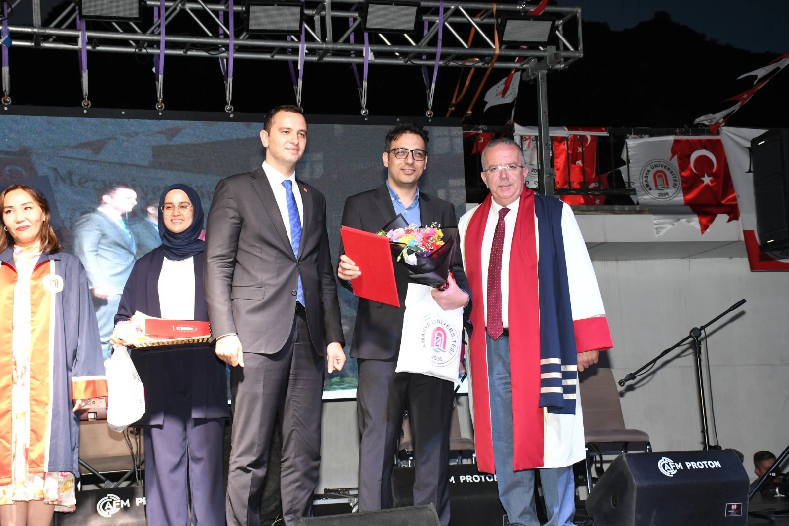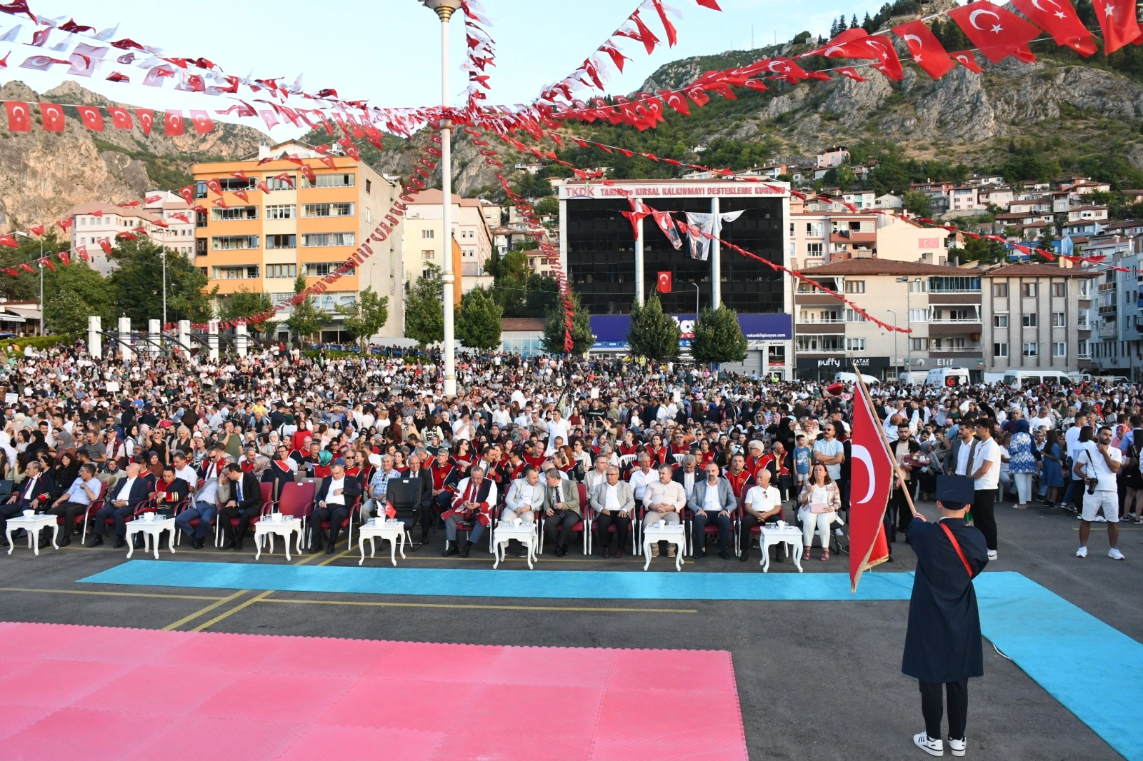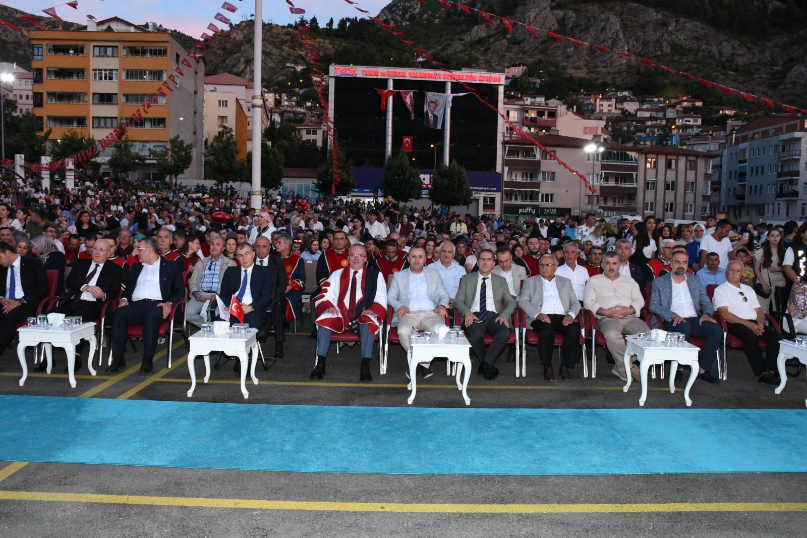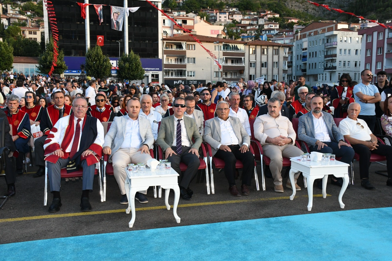 Amasya Üniversitesi 2023-2024 Akademik Yılı Mezuniyet Töreni coşkuyla gerçekleşti. Amasya Çelebi Mehmet Kent Meydanında düzenlenen mezuniyet törenine, Amasya Valisi Yılmaz Doruk, Amasya Milletvekili Hasan Çilez, Tuğgeneral Kemal Çakıroğlu, Amasya Belediye Başkanı Av. Turgay Sevindi, Amasya Üniversitesi Rektörü Prof. Dr. Ahmet Hakkı Turabi, Rektör Yardımcıları Prof. Dr. Murat Kurt, Prof. Dr. Mehmet Kızılkaya, Genel Sekreter Osman Akbaş, il protokolü, siyasi partilerin yöneticileri, STK temsilcileri, dekanlar, yüksekokul müdürleri, akademik, idari personelle birlikte mezun öğrenciler ve aileleri katıldı.