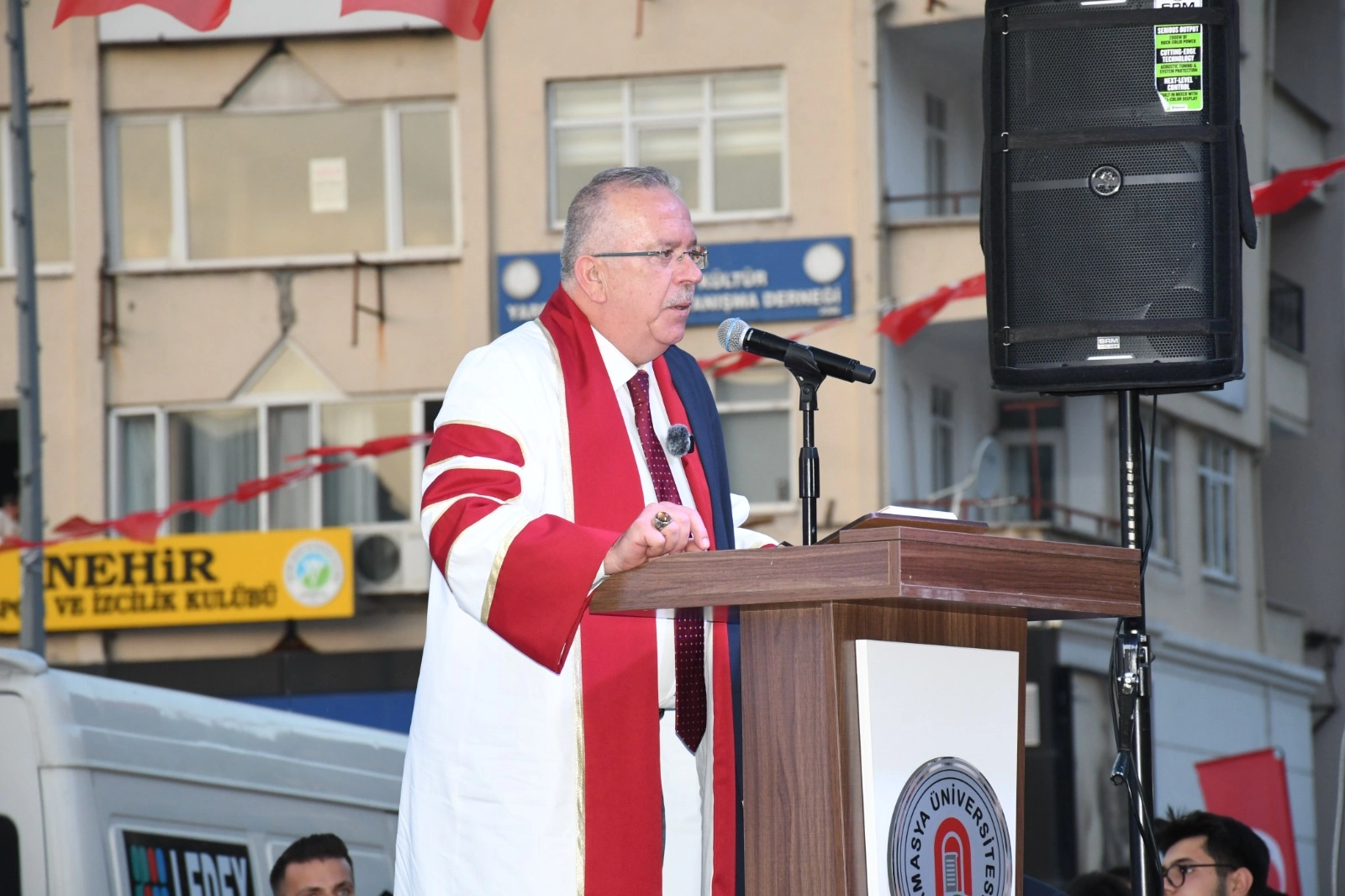 Amasya Üniversitesi 2023-2024 Akademik Yılı Mezuniyet Töreninde bir konuşma yapan Amasya Belediye Başkanı Av. Turgay Sevindi konuşmasında şunları kaydetti;