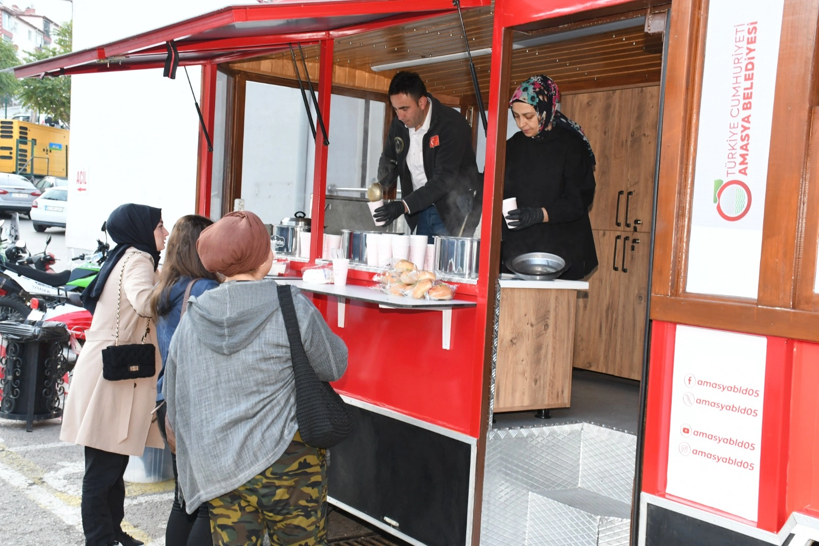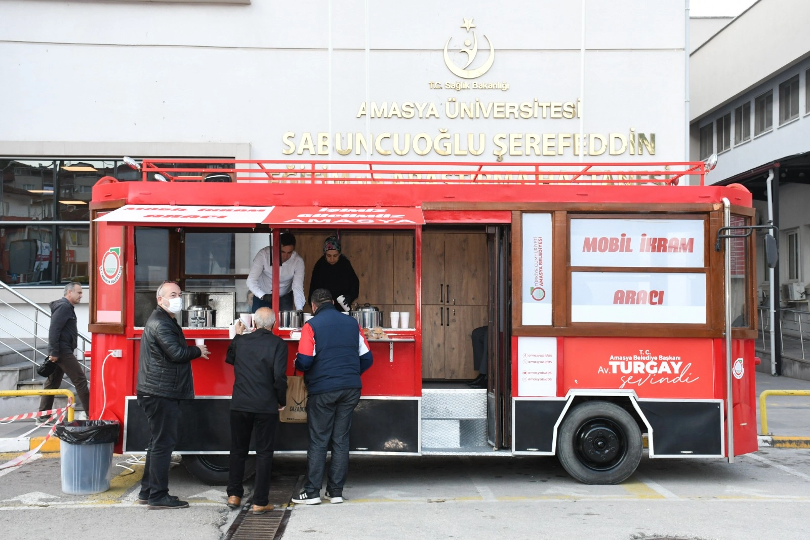 Amasya Belediyesinin “Çorbabüs” olarak adlandırdığı ücretsiz mobil ikram aracında hastaneye gelen vatandaşlara ücretsiz sıcak çorba ikram edildi.Amasya Üniversitesi Sabuncuoğlu Şerefeddin Eğitim Araştırma Hastanesi önüne konuşlandırılan Belediyenin ücretsiz ikram aracında hastaneye gelen hastalara, yakınlarına, hastane personeline ve vatandaşlara Amasya Belediye Başkanı Turgay Sevindi mobil ikram aracında ücretsiz sıcak çorba dağıttı.