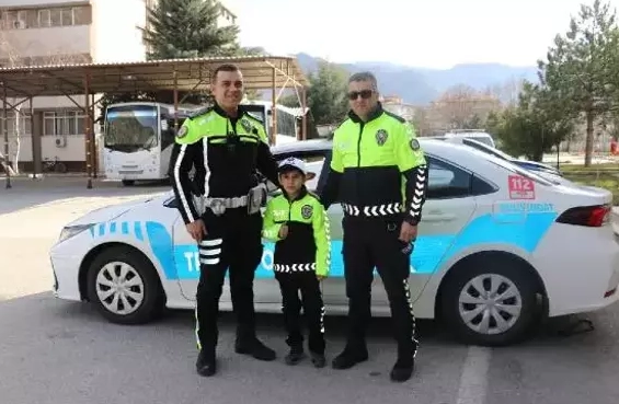 Polislerin sürprizi karşısında mutlu olduğunu söyleyen Oğuz Kağan Mıkkırdı, “Hayalim trafik polisi olmaktı. Trafikçi abiler gibi polis yeleği giymek istedim. Polis amcalar da bana trafik polisi kıyafeti hediye edip giydirdi. Çok mutlu oldum, onlara teşekkür ederim” dedi.