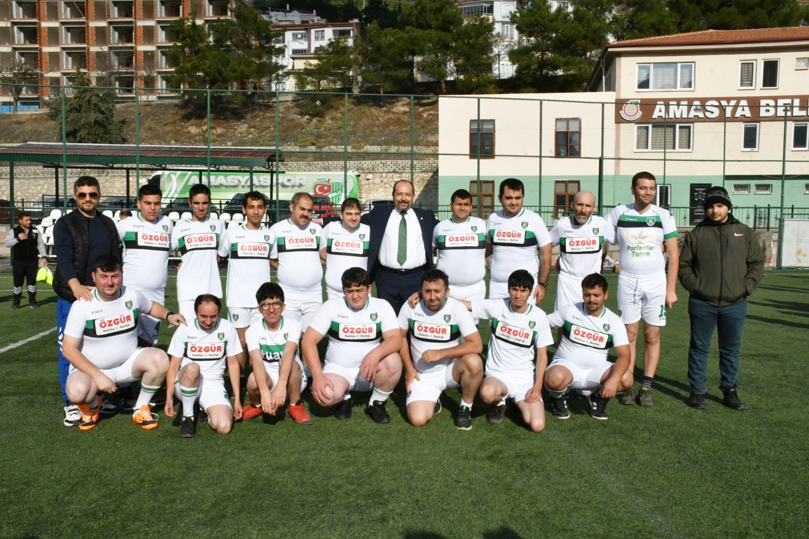Amasya'da protokol üyeleri ve engelli bireyler arasında futbol maçı yapıldı. Maçın hakemliğini Gençlik ve Spor İl Müdürü Haşim Murat Öztürk yaptı. Heyecanlı ve rekabet halinde geçen müsabaka dostluk içinde biterken, kazananı da engelli bireyler oldu. Amasya Valisi Önder Bakan, engellilere karşı duyarlılığı ve farkındalığı artırmak için birçok çalışma yürüttüklerini söyledi. Engelliler için yeni eğitim branşlarını devreye soktuklarını, sosyal yaşamlarını ve göstermiş oldukları azim ile çabayı geliştirmek için de uğraş verdiklerini belirten Vali Bakan, "Geçen hafta engelli kardeşlerimizle kahvaltı yaparken onlara Amasyasporla birlikte bir futbol maçı sözü vermiştik. Amasyaspor kulübümüzün başkanı, futbolcuları, hocasıyla birlikte bir araya gelerek onları mutlu etmeye çalıştık. Çok da güzel oldu, çok da keyifli oldu, görüyorsunuz hepsi mutlular. Onların yüzlerinin gülmesi bizim için çok kıymetli ve değerli, kardeşlerimizin de mutlu olması bizi ziyadesiyle mutlu ediyor" dedi. Amasyasporlu futbolculardan Berkay Arslan ise “Buradaki bu organizasyonu görünce çok mutlu olduk. Gerek Belediye Başkanımıza gerek Valimize çok teşekkür ediyoruz, böyle güzel bir organizasyon yaptıkları için” diye konuştu. Özel bireylerden Semih Kılıç da “Çok güzel bir maç yaptık, ben gol attım. Ailem için attım, özellikle rahmetli anneme gönderdim. Çok iyi oynadık, çok mutlu olduk” şeklinde konuştu. Haber: Sinan HARMANCI