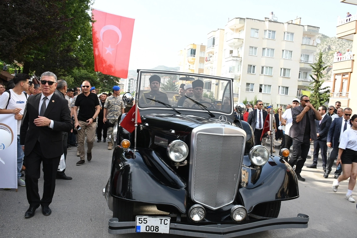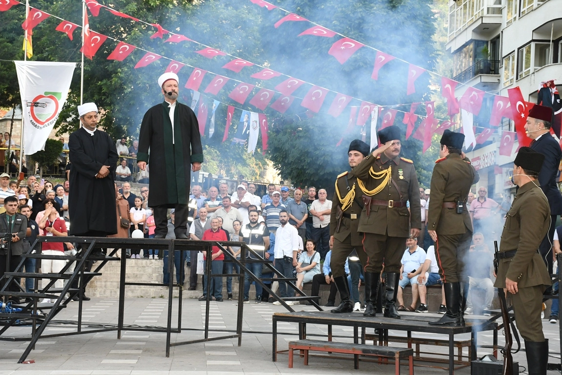 Amasya’da Gazi Mustafa Kemal Atatürk'ün kente gelişinin 105’inci yıldönümü nedeniyle Uluslararası Atatürk, Kültür ve Sanat Festivali, düzenlendi.Mustafa Kemal Atatürk'ün 12 Haziran 1919'da Amasya'ya geldiğinde karşılandığı Cülüs Tepe mevkisinde temsili tören yapıldı. Canlandırmada Amasya Müftüsü Hacı Hafız Tevfik Efendi, "Paşam bütün Amasya emrinizdedir" sözleriyle Atatürk'ü karşıladı. Samsun'dan getirilen özel aracıyla konvoya öncülük eden Atatürk'ü ve beraberindekileri temsil eden oyuncuların peşinden Cumhurbaşkanı Vekili Cevdet Yılmaz, CHP Genel Başkanı Özgür Özel ve protokol üyeleri Cülus Tepe’den Yavuz Selim Meydanı’na kadar ‘Atatürk ve Bayrağa Saygı’ korteji eşliğinde yürüdüler.